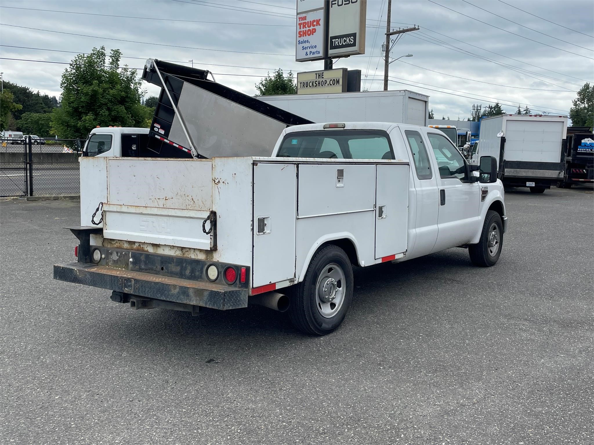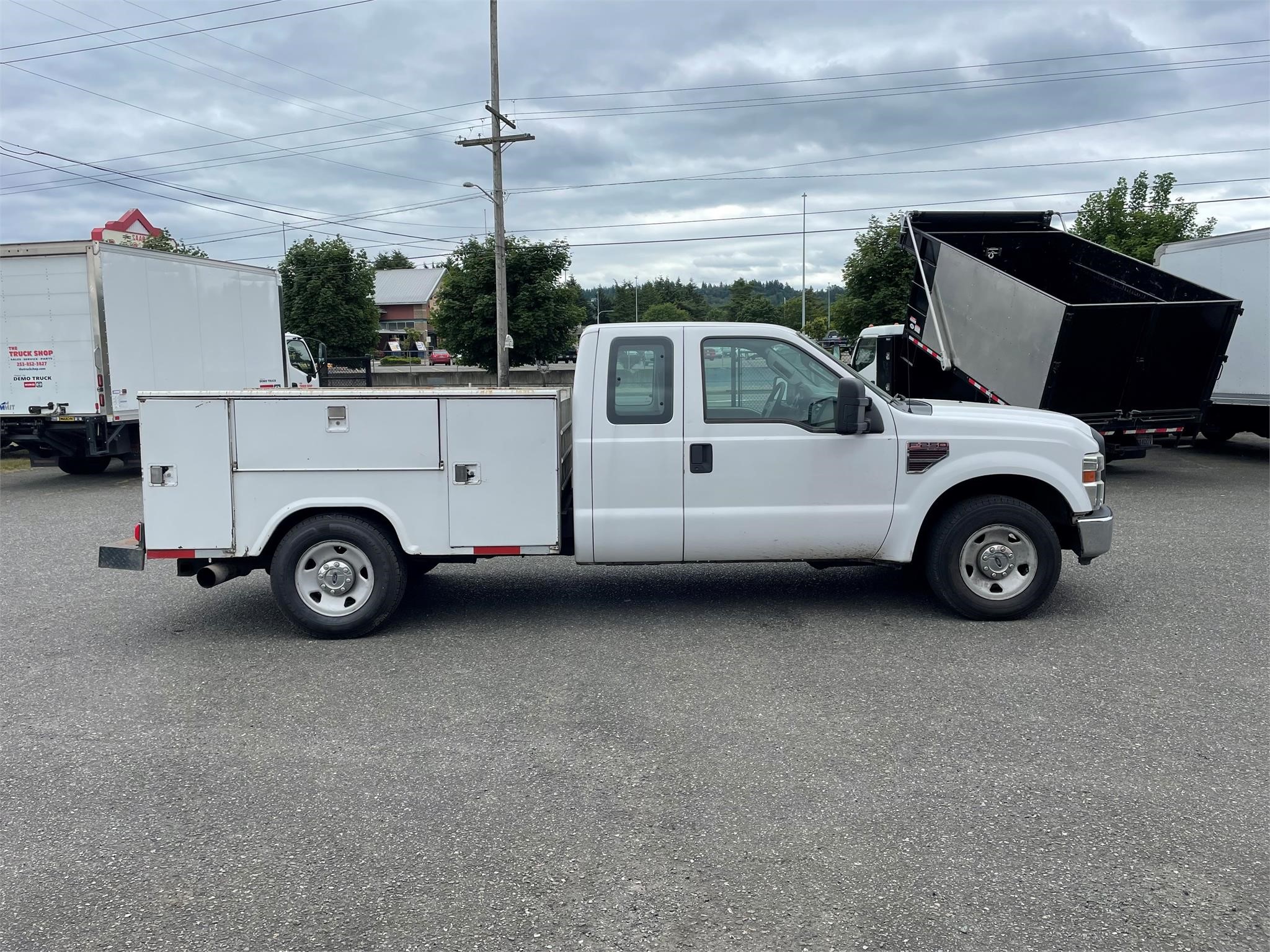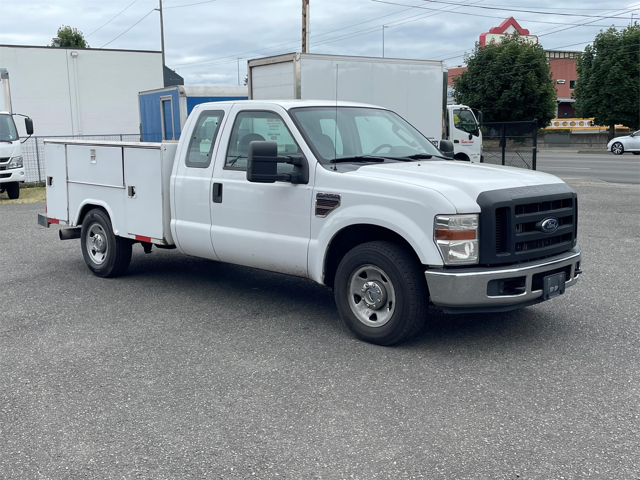 Location: Auburn, Condition: Used, Inventory Type: Trucks, Category: Trucks – Service Trucks / Utility Trucks / Mechanic Trucks, Year: 2008, Manufacturer: FORD, Model: F250 SD, Stock Number: U100804, Zip/Postal Code: 98002, VIN: 1FTSX20R48EC19413, Mileage: 229454, Engine Make: FORD, Transmission: Automatic, Horsepower: 350, Color: WHITE, Quantity: 1, Suspension: Spring, Tires: 245/75R/17, Wheels: All Aluminum, Wheelbase: 159, Axle: Single, Cab: Extended Cab, Fuel: Diesel, GVWR: Class 2, Engine Type: 6.4L POWER STROKE, Drive: 4×2, Drive Position: Left Hand Drive, Cruise Control: 1, Power Steering: 1, GVW: 9800