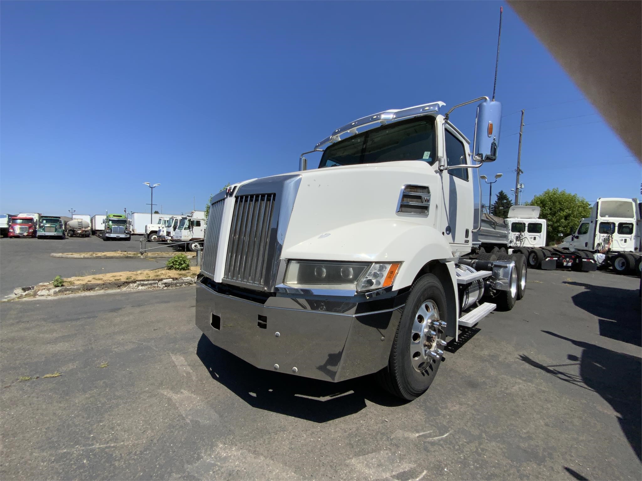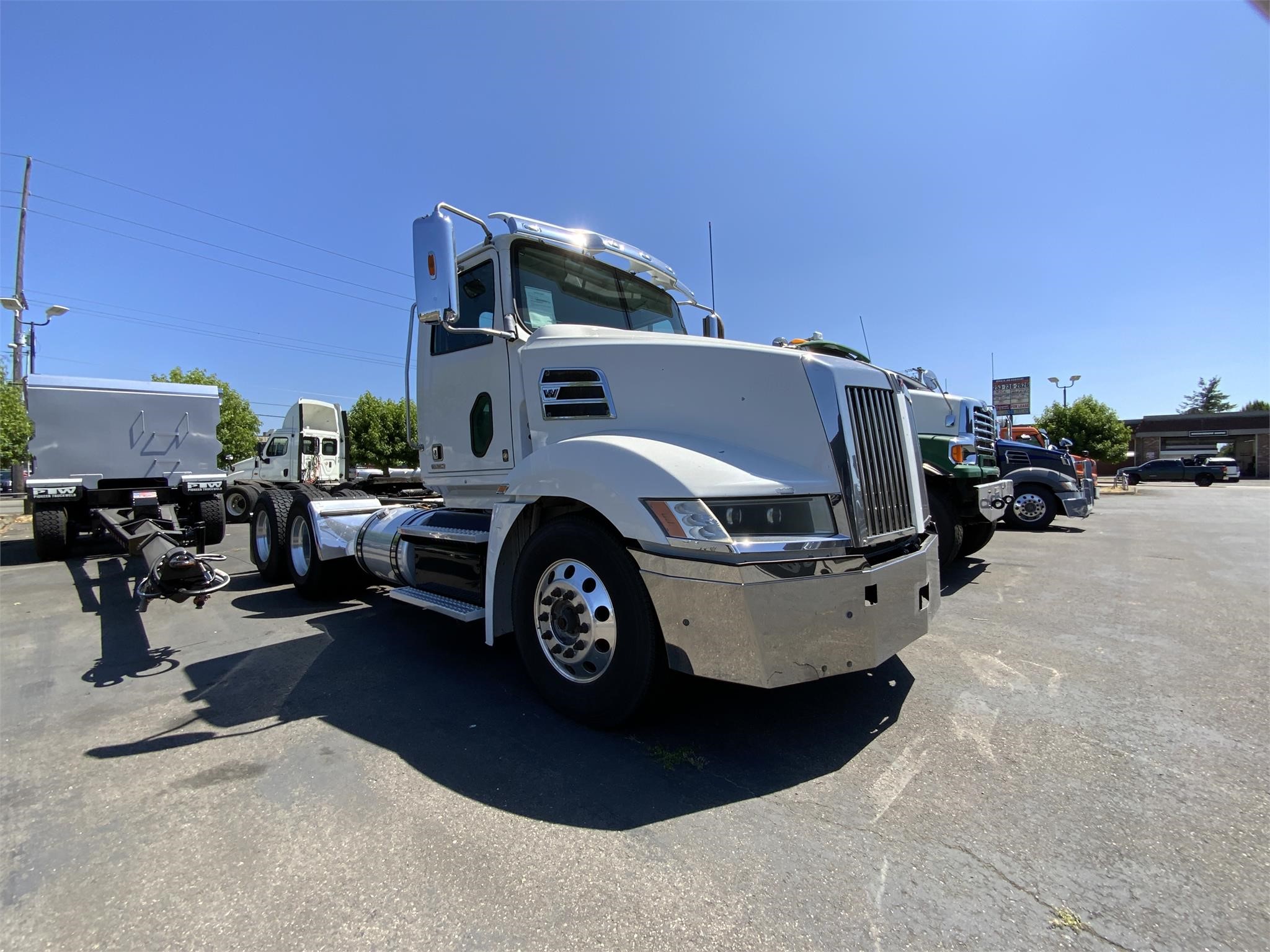 Location: Auburn, Condition: Used, Inventory Type: Trucks, Category: Trucks – Day Cab Trucks, Year: 2016, Manufacturer: WESTERN STAR, Model: 5700XE, Stock Number: U101475, Zip/Postal Code: 98002, VIN: 5KJJBLD55GLGY5746, Mileage: 402131, Engine Make: DETROIT, Transmission: AMT, Horsepower: 505, Color: WHITE, Quantity: 1, Suspension: Air Ride, Tires: 11R22.5, Axle: Tandem, Front Axle: 12350, Rear Axle: 40000, Cab: Standard Cab, Fuel: Diesel, Engine Type: DD15, Transmission Speed: 12 Spd, Transmission Type: DT12, Drive Position: Left Hand Drive, Power Windows: Both, Power Steering: 1