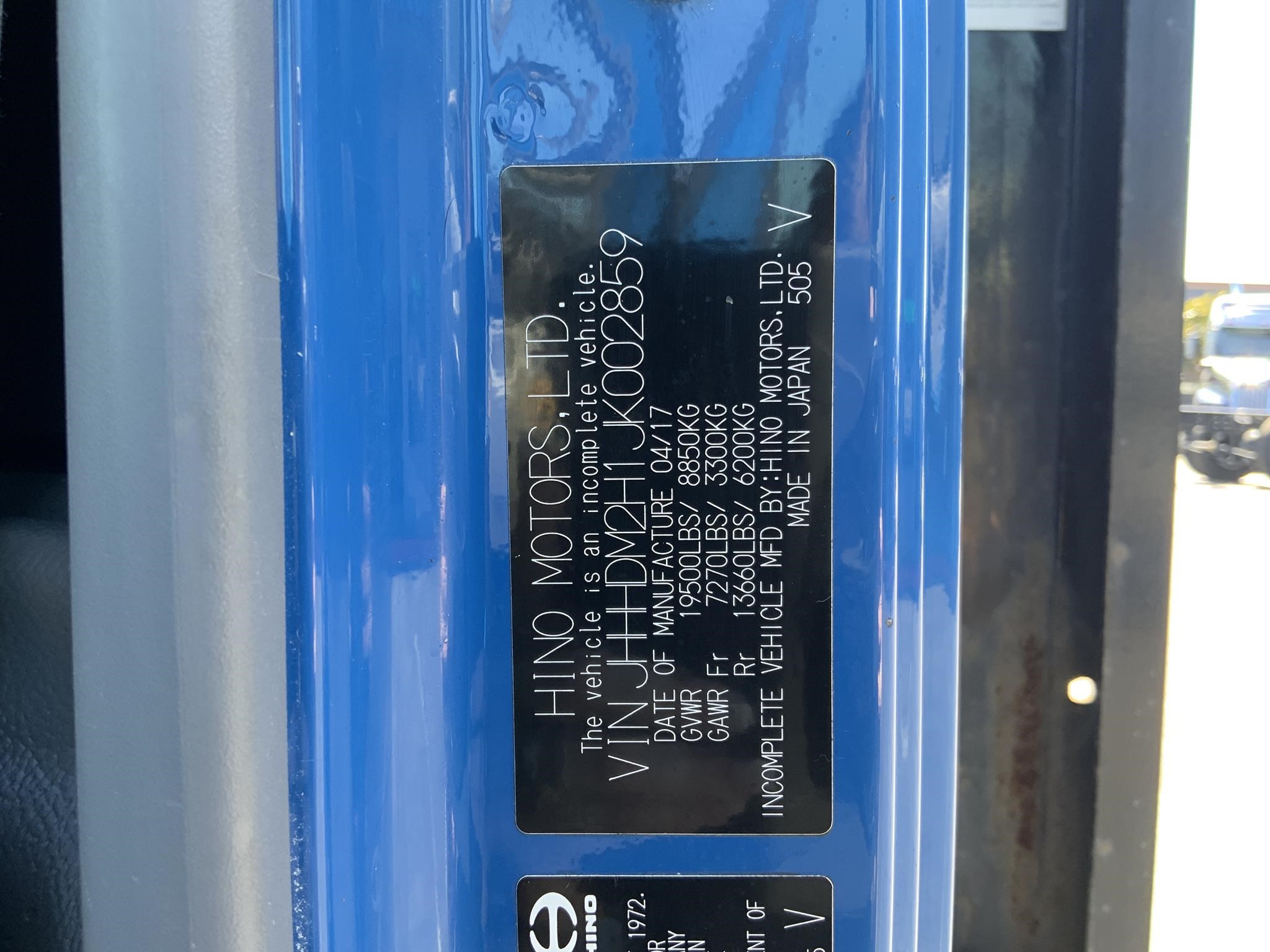 | Tires: 225/70R19.5 | VIN: JHHHDM2H1JK002859 |