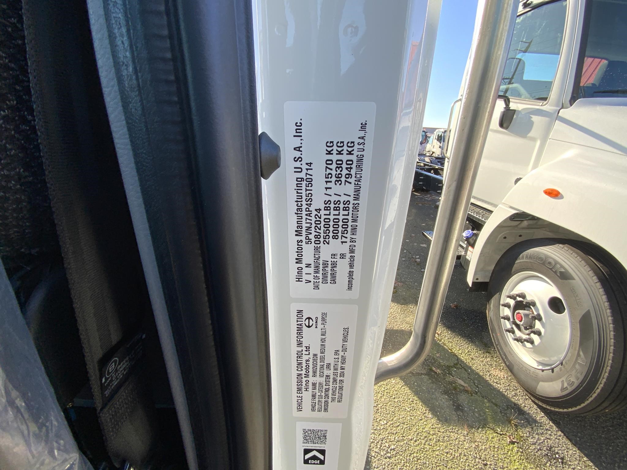 Location: Auburn, Condition: New, Inventory Type: Trucks, Category: Trucks – Cab & Chassis Trucks, Year: 2025, Manufacturer: HINO, Model: L6, Stock Number: H101826, Zip/Postal Code: 98002, VIN: 5PVNJ7AP4S5T50714, Engine Make: CUMMINS, Transmission: Automatic, Horsepower: 260, Color: WHITE, Quantity: 1, Suspension: Hendrickson, Wheels: All Steel, Wheelbase: 217, Axle: Single, Front Axle: 8000, Rear Axle: 17500, Ratio: 4.11, Cab: Standard Cab, Fuel: Diesel, GVWR: Class 6, Engine Type: B6.7, Transmission Speed: 6 Spd, Transmission Type: Allison RDS, Drive: 4×2, Drive Position: Left Hand Drive, Power Locks: 1, Cruise Control: 1, Power Windows: Both, Power Steering: 1, Fuel Capacity: 50
