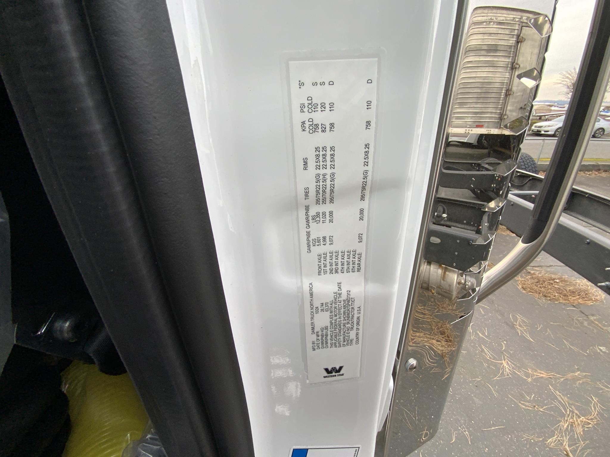 Includes FET Location: Auburn, Condition: New, Inventory Type: Trucks, Category: Trucks – Day Cab Trucks, Year: 2025, Manufacturer: WESTERN STAR, Model: 49X, Stock Number: W101793, Zip/Postal Code: 98002, VIN: 5KJNBWDR7SPWD7312, Engine Make: DETROIT, Transmission: AMT, Horsepower: 505, Color: WHITE, Quantity: 1, Suspension: Hendrickson, Tires: 295/75R22.5, Wheels: All Aluminum, Wheelbase: 244, Axle: Tri, Front Axle: 13300, Rear Axle: 40000, Ratio: 3.08, Cab: Standard Cab, Fuel: Diesel, GVWR: Class 8, Engine Type: DD15, Transmission Speed: 12 Spd, Transmission Type: DT12, Drive: 8×4, Drive Position: Left Hand Drive, Power Locks: 1, Cruise Control: 1, Power Windows: Both, Power Steering: 1, Fuel Capacity: 140