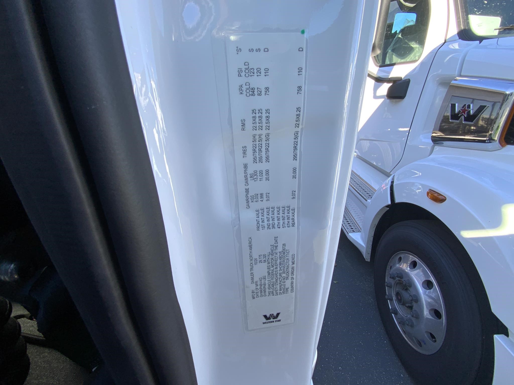 Includes FET Location: Auburn, Condition: New, Inventory Type: Trucks, Category: Trucks – Day Cab Trucks, Year: 2025, Manufacturer: WESTERN STAR, Model: 57X, Stock Number: W101629, Zip/Postal Code: 98002, VIN: 3BHNBZDR0SDWD6728, Engine Make: DETROIT, Transmission: AMT, Horsepower: 505, Color: WHITE, Quantity: 1, Suspension: Air Ride, Tires: 295/75R22.5, Wheels: All Aluminum, Wheelbase: 239, Axle: Tri, Front Axle: 13300, Rear Axle: 40000, Ratio: 3.08, Cab: Standard Cab, Fuel: Diesel, GVWR: Class 8, Engine Type: DD15, Transmission Speed: 12 Spd, Transmission Type: DT12, Drive: 8×4, Drive Position: Left Hand Drive, Power Locks: 1, Power Windows: Both Power, Steering: 1, Fuel Capacity: 170