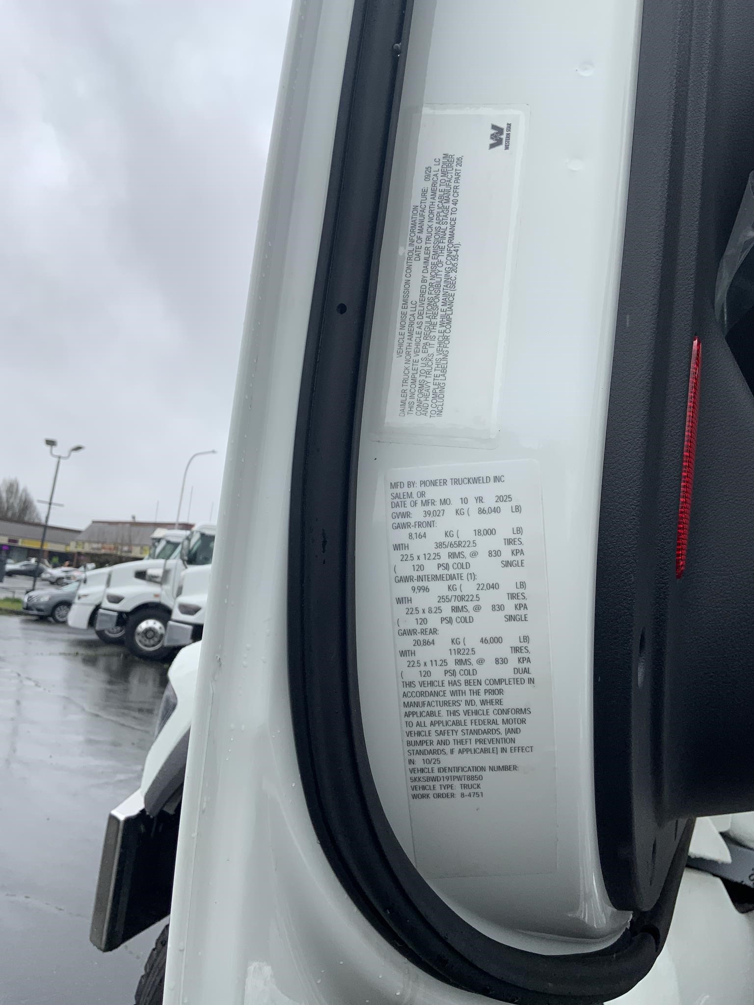 | Tires: 385/65R22.5, 11R22.5 | VIN: 5KKSBWD19TPWT8850 |